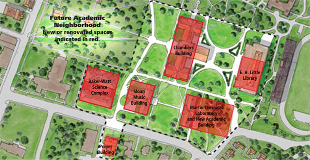 The new academic neighborhood configuration will provide for increased opportunities for collaboration with outside businesses, organizations, and universities, significantly enhancing Davidson’s already considerable program of undergraduate research.