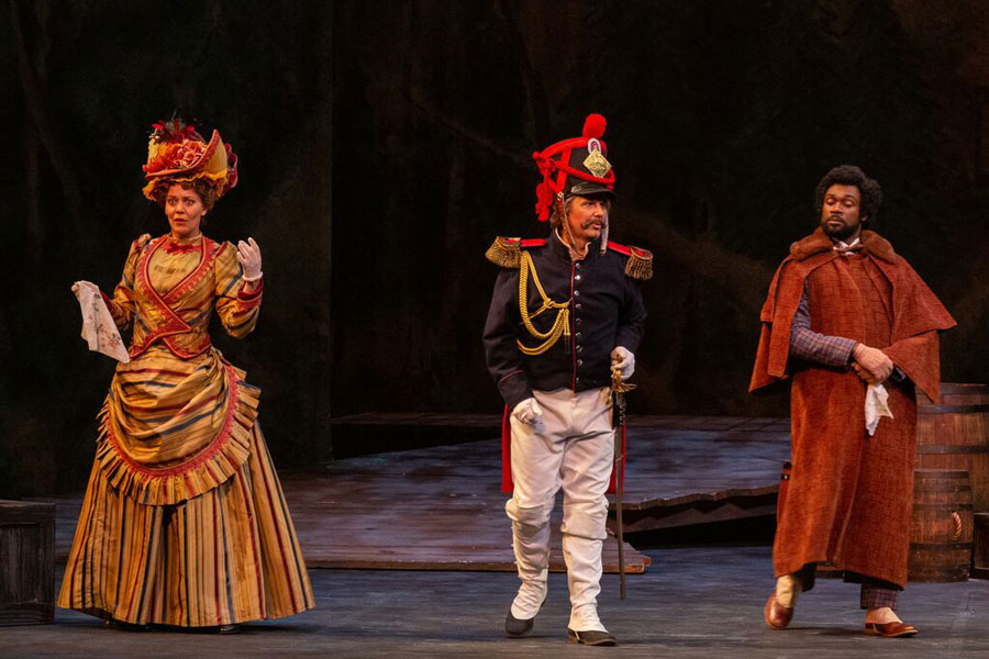 Pictured (l-r): Maariana Vikse as the Marquise of Berkenfeld, with Matthew Burns (as Sergeant Sulpice) and Carl DuPont (as Hortensius) in Opera Carolina’s production of The Daughter of the Regiment. Photo Credit: Mitchell Kearney Photography. Performing opera professionally is always challenging, but especially so when you have been diagnosed with breast cancer. Mezzo-soprano Maariana Vikse, who sings the role of the Marquise of Berkenfeld in Donizetti’s The Daughter of the Regiment told us about her experience.