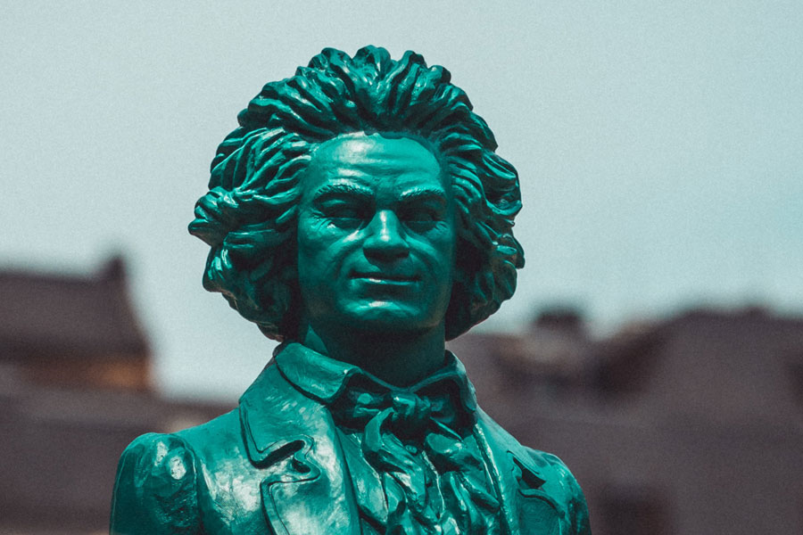 I have studied 46 images online of Beethoven, ranging from his teenage years to his death mask. Every painting, sculpture and drawing has one thing in common: He’s never smiling.